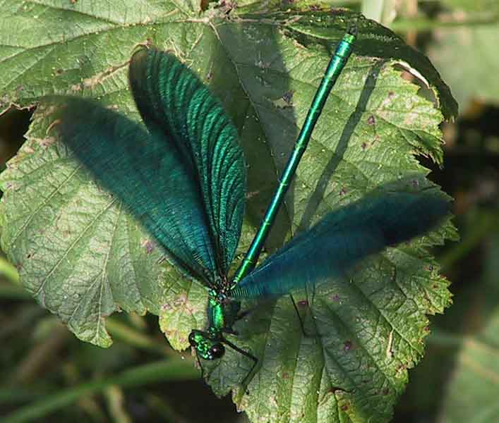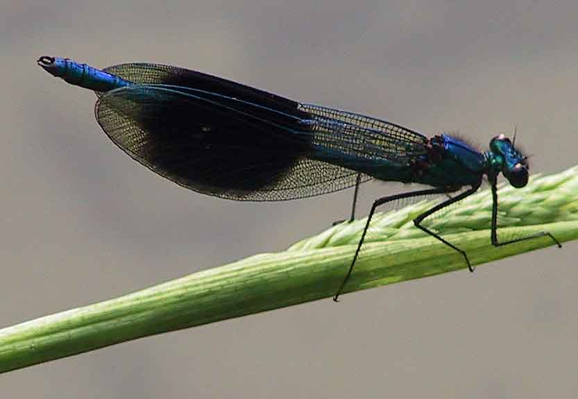 Blauflügel-Prachtlibelle (Calopteryx virgo) (m) 22.06.2002 17:46 Bw:70 mm PA, Blende: 8,0 Zeit: 1/80 mM, Belichtungsausgleich: -1/3, AF