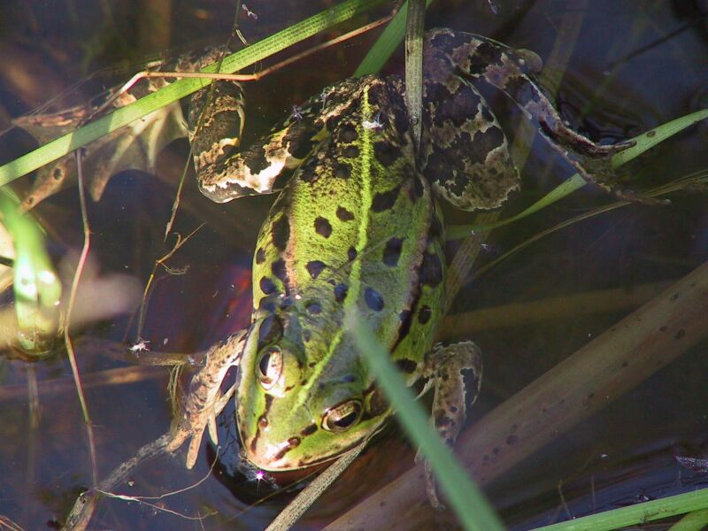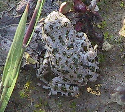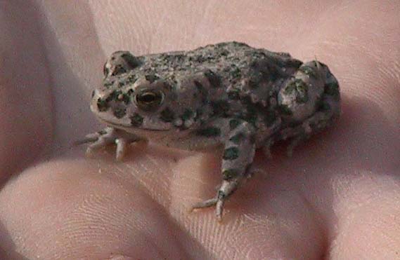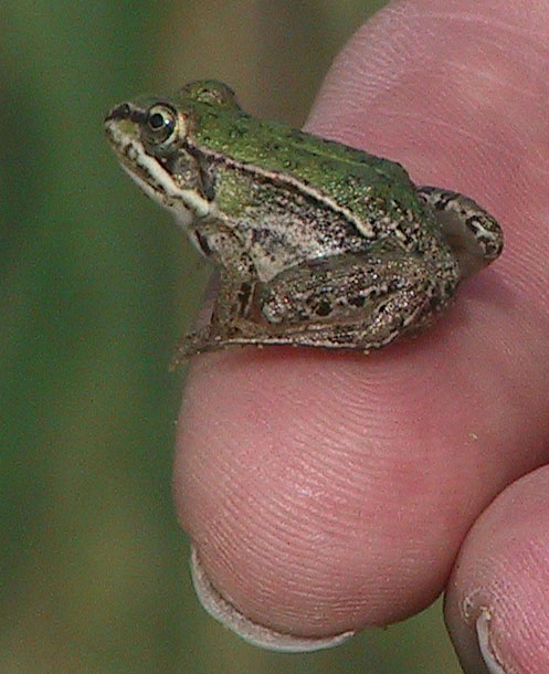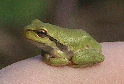 Laubfrosch (Hyla arborea) juvenil - auf dem Handballen sitzend