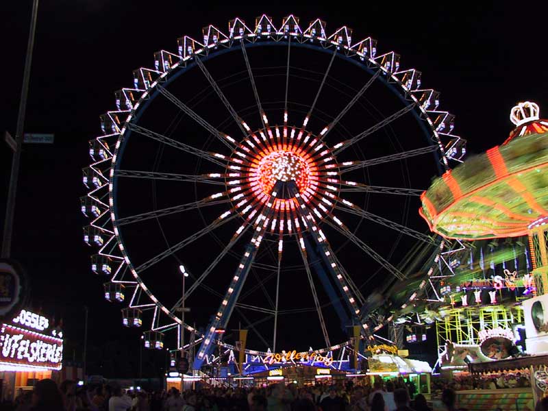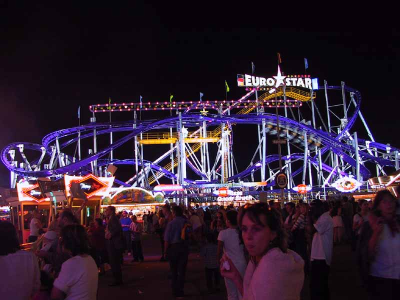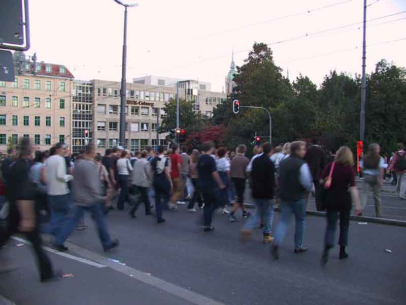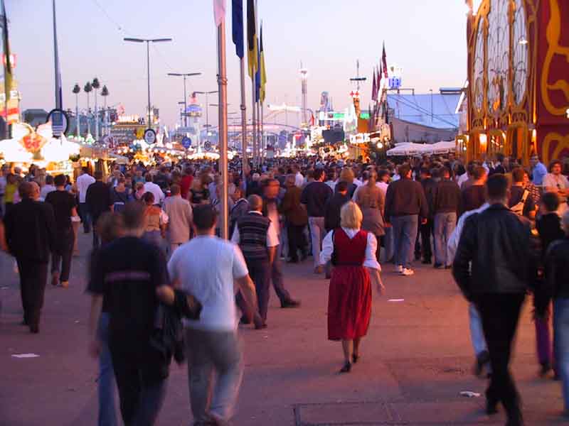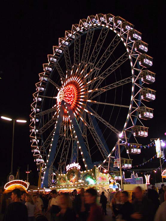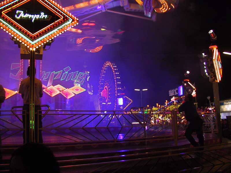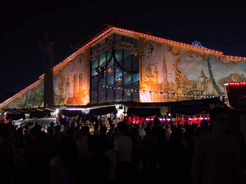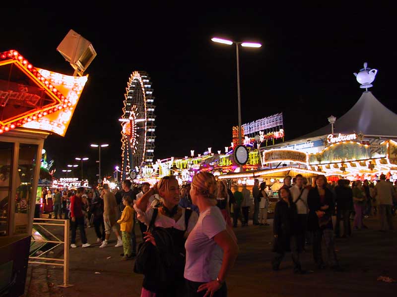 Alle Fotos wurden mit der Digitalkamera Canon PowerShot 90 IS gemacht. Erläuterung der untenstehenden Abkürzungen: Bw = Brennweite ( 7 - 70 mm entspricht Kleinbild von 37 - 370 mm) PA = Programmautomatik, Av = Blendenautomatik, Tv = Zeitautomatik mM = mittenbetonte Messung der Belichtung, SM = Spotmessung . 02.10.2001 18:54 Auf dem Weg von der Hackerbrücke zum Nord-Eingang der Wiesn Bw:7 mm PA, Blende: 2,8 Zeit: 1/13 mM, Belichtungsausgleich: -1