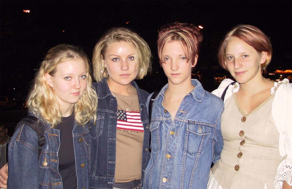 02.10.2001 21:01 Vier Mädchen, die statt ins Internet lieber in die Zeitung gekommen wären. Bw: 11,8 mm PA, Blende: 2,8 Zeit: 1/60 mM, Belichtungsausgleich: -1 1/3, Blitz