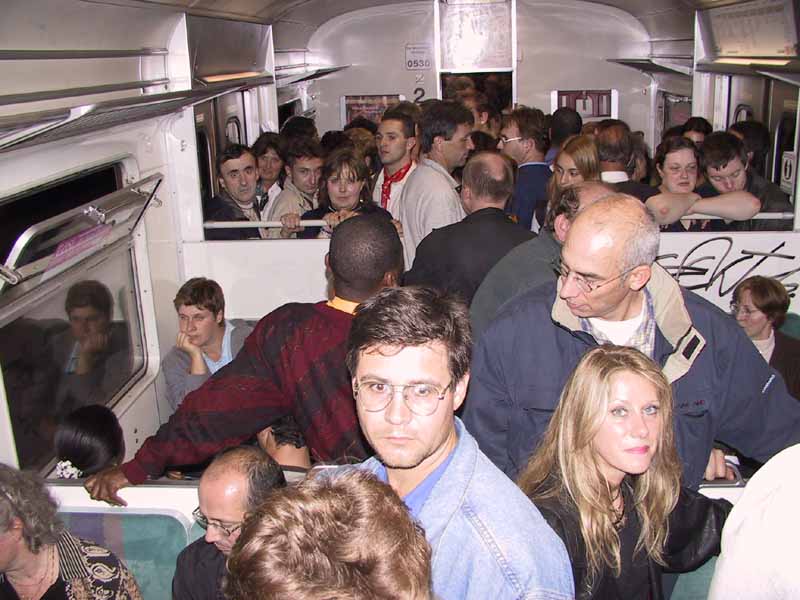 02.10.2001 22:41 Ich liebe überfüllte S-Bahnen Bw: 57 mm PA, Blende: 2,8 Zeit: 1/60 SM, Belichtungsausgleich: -1 1/3, Blitz